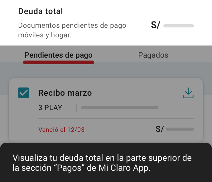 Puedes ver tus recibos pendientes y también pagarlos desde Mi Claro App. Encuéntralos en la sección Pagos.